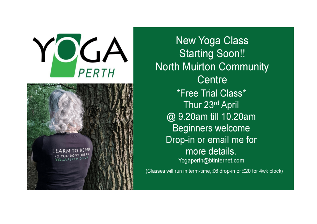 A new yoga class is launching at North Muirton Community Centre, and you’re invited to come along for a free trial session on Thursday 23rd April from 9:20 to 10:20am. It’s a friendly, welcoming class designed with beginners in mind, so whether you’re completely new to yoga or returning after a break, you’ll feel right at home. You can simply drop in on the day or get in touch at Yogaperth@btinternet.com for more details. Classes will continue during term‑time at £6 per session or £20 for a 4‑week block, making it an easy way to build a regular practice.